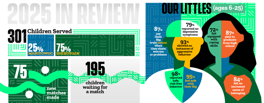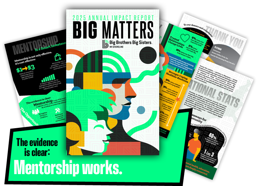 Mentorship works. In 2025, Big Brothers Big Sisters WI Shoreline continued to connect young people with caring adults who show up, listen, and make a lasting difference. This report highlights the real impact of those relationships—and the community that makes them possible.